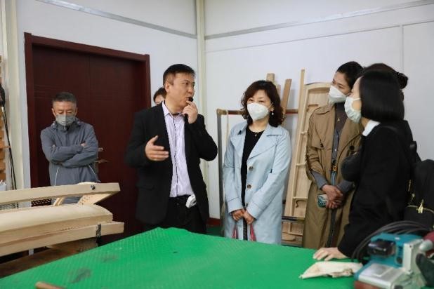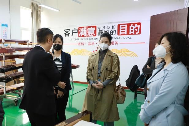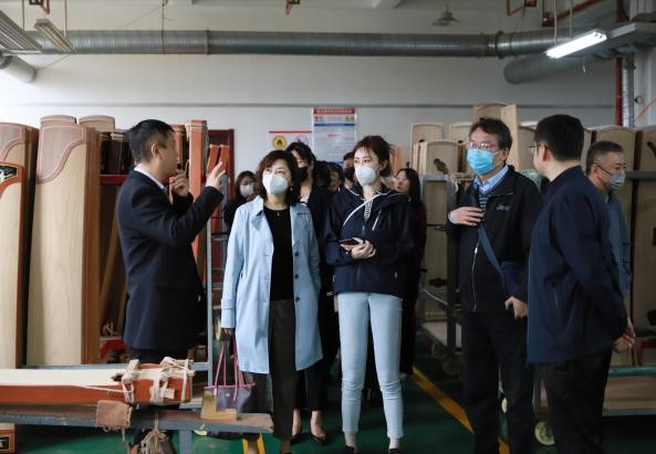 調研組通過對各生產車間、研發中心及售后服務中心進行實地考察調研,詳細了解了樂器廠現階段主營產品古箏、古琴的研發制作全過程,對安全生產管理、環保設備、倉儲管理、機械設備等運轉情況進行了詳細調研。