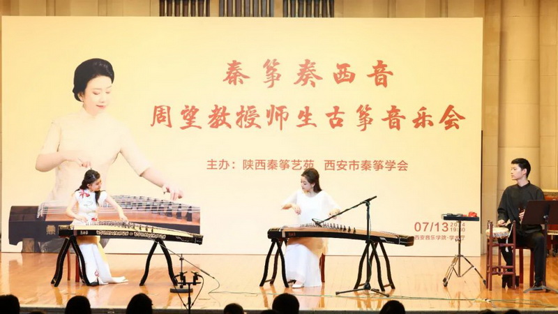 7月13日晚,著名古箏演奏家、教育家、中央音樂學院周望教授攜“百花引” 箏團、“中華箏”五色弦樂團在西安音樂學院學術廳帶來“秦箏奏西音”——“周望教授師生古箏音樂會”。