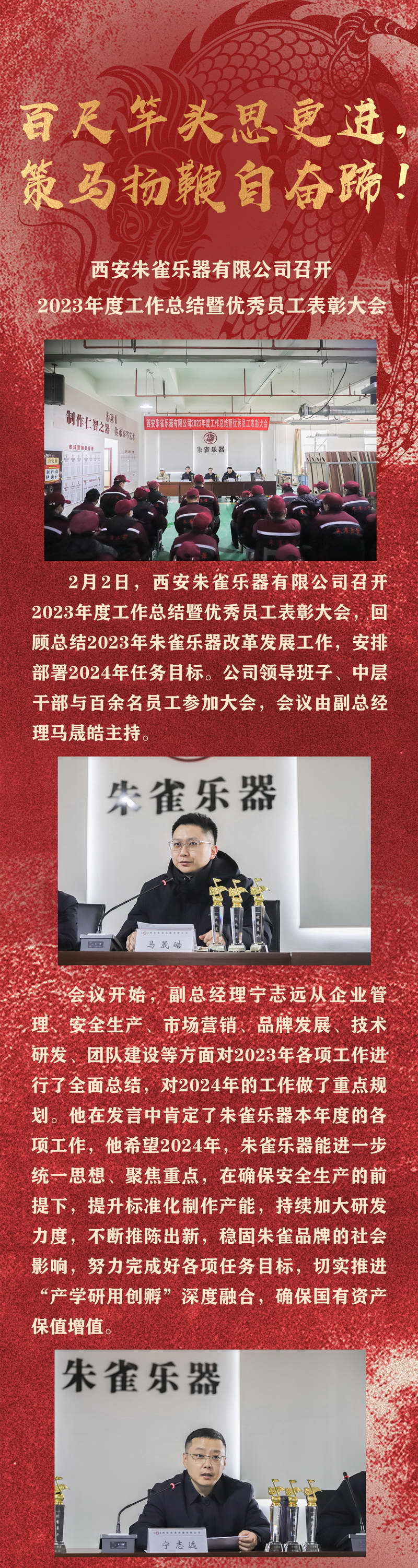 西安朱雀樂器有限公司召開 2023年度工作總結暨優秀員工表彰大會